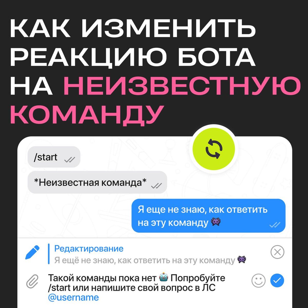 😮 Как изменить реакцию бота на неизвестную команду? В статье 👤 Светлана Гизатулина написала инструкцию с тремя вариантами настройки: • Замена стандартного текста • Сохранение сообщения пользователя и отправка уведомления администратору • Запуск команды в зависимости от категории Подробнее: http://devgrowbot.ru/blog/instr/unknown-command 🎁Напоминаем о нашей программе лояльности, за участие в которой мы дарим бонус #Статья