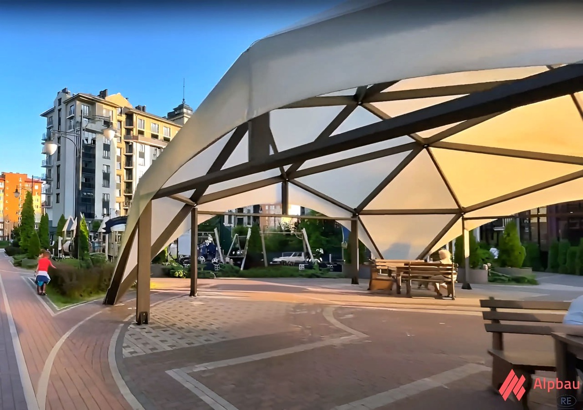 Так выглядит Квадросфера Alpbau спустя 7 лет после установки 👆 Конструкция 12х12м была установлена нами в 2018 году, к открытию ЖК «Цветной бульвар» в Калининграде. Квадросфера стала частью дворовой территории комплекса, здесь жители могут спрятаться от солнца, дождя или снега или просто отдохнуть. Как и все Квадросферы, конструкцию не нужно разбирать на зиму, поскольку она приспособлена к снеговым и ветровым нагрузкам. Освещение «Звёздное небо» даёт возможность находиться внутри и в темное время суток, а полупрозрачный тент обеспечивает идеальный баланс между тенью и светом днем. 🅰️ Квадросферы Alpbau используются во многих современных ЖК. Они создают атмосферу тепла и уюта, превращая пространство вокруг домов в комфортные зоны отдыха. Это становится дополнительным преимуществом жилых комплексов, повышая их привлекательность для покупателей, поэтому девелоперы выбирают наши конструкции. Вас интересуют Квадросферы или любые другие конструкции из дерева? Обращайтесь в Alpbau.