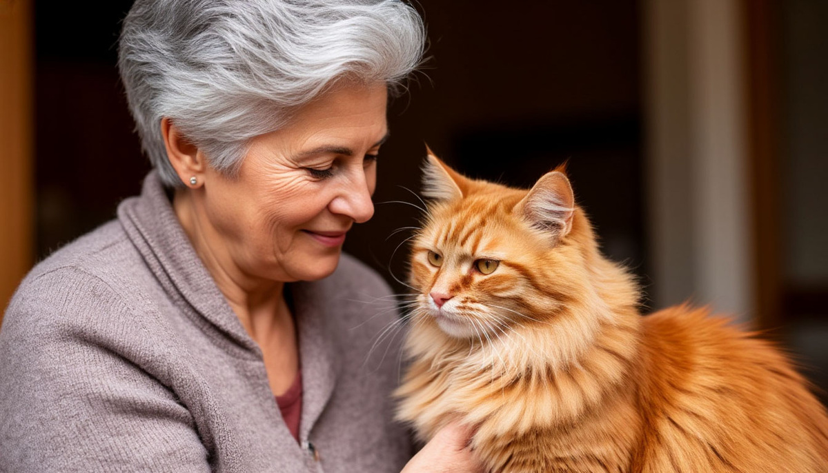 Кот Рыжик подошёл и потёрся о её ногу, почуяв, что хозяйка чем-то расстроена.