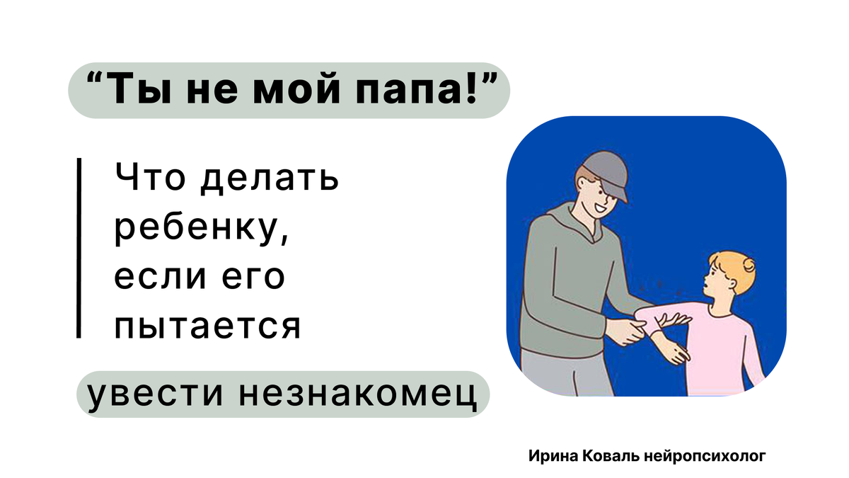 Мужчина средь бела дня попытался увести 8-летнюю девочку. Происшествие попало на камеры наблюдения. На кадрах видно, как незнакомец тянет девочку за руку, а она упирается. К счастью, это заметил прохожий и вмешался. Преступник сказал, что он отец ребенка, а девочка это отрицала. Когда подошли другие люди, мужчина отпустил девочку и скрылся. Это случилось на прошлой неделе. Что особенно пугает - это произошло не в безлюдной подворотне, а в оживленном месте, у магазина. И первое время люди вокруг не реагировали. Преступник вел себя настолько уверенно, что мог показаться окружающим настоящим отцом, "воспитывающим" непослушного ребенка. ❓Что делать ребенку в такой ситуации? Если есть возможность, отойти на безопасное расстояние и бежать в людное место. Громко кричать “Ты не мой папа! Я тебя не знаю! Помогите!” и привлекать внимание любыми способами, можно даже разбить витрину, окно, уронить что-то. Теперь подробнее: ✔️Учите детей громко кричать и физически сопротивляться И одного раза тут