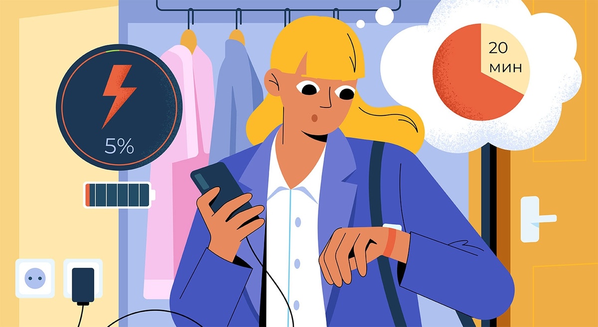 Быстрая зарядка поднимает планку: 15, 25, 45 Вт и выше. Чем выше показатель ватт, тем больше «напор» энергии и тем быстрее заряжается батарея. Плюсы очевидны: экономия времени, удобство, возможность по