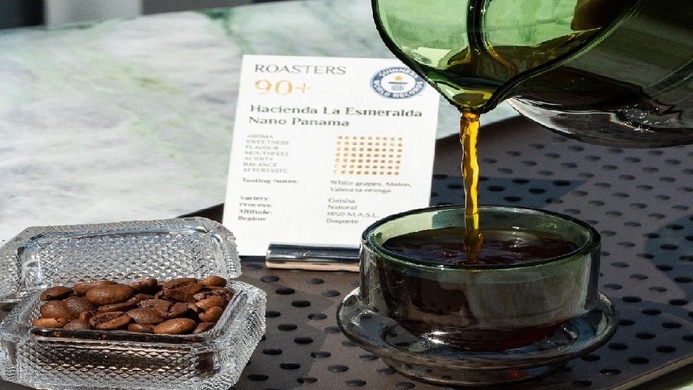 Церемония приготовления и дегустации состоялась в кофейне Roasters в дубайском районе Даунтаун. Анонимный гость, имя которого не разглашается, получил свой напиток в хрустальном бокале от японской фирмы Edo Kiriko, известной своими изысканными гравированными узорами. К кофе ему также подали порцию тирамису и шоколадного мороженого, в приготовлении которых использовали те же элитные зерна Geisha.