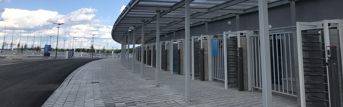 - Моторизованные турникеты – самые дорогие и эффективные модели турникетов. Они оснащены датчиками движения, которые фиксируют начало движения, посылают сигнал о разрешении на проход, и электромотор прокручивает планки турникета. Автоматические турникеты делают доступным проход для граждан с багажом и крупногабаритными предметами, а также для посетителей с ограниченными возможностями.