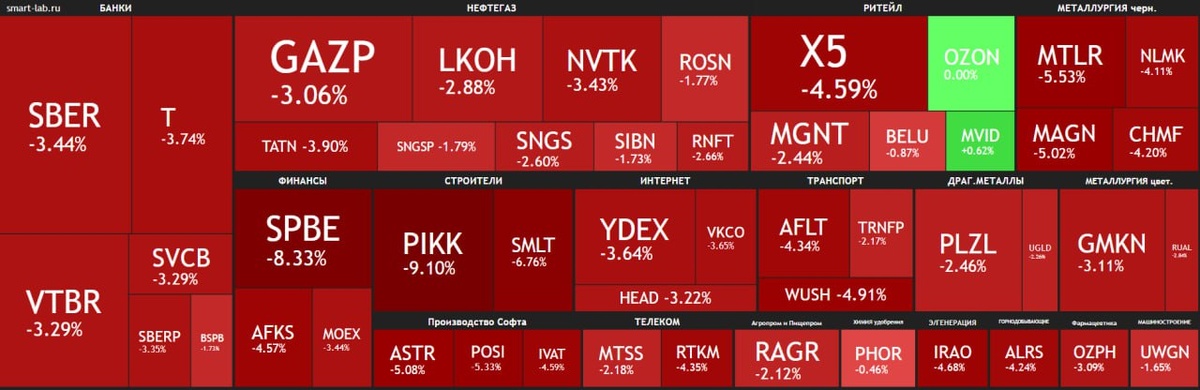 🇷🇺 Весь рост с начала года потерян: Индекс Мосбиржи теряет почти 4%, а RGBI — 0,7