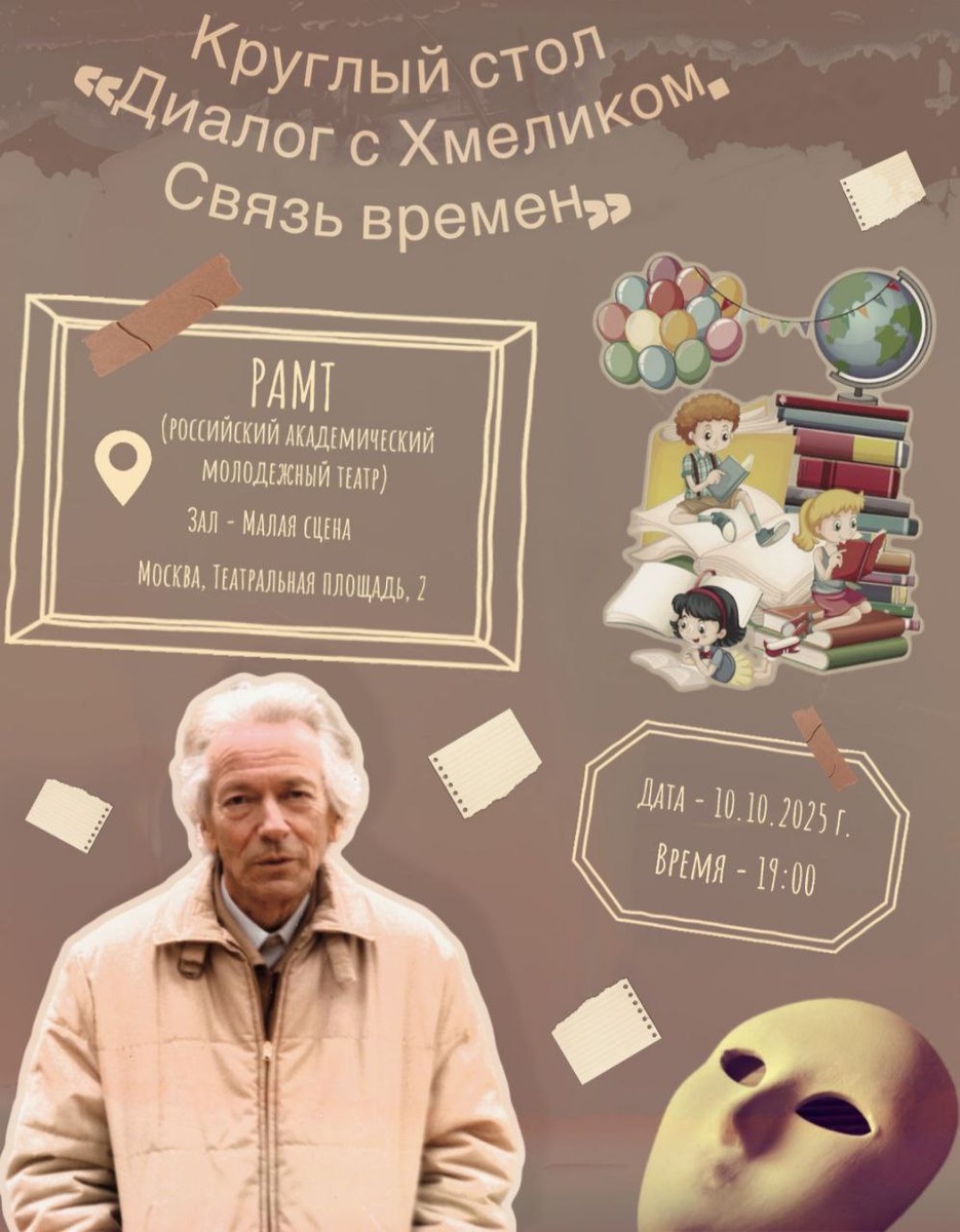 Традиции, дерзость и немного Хмелика: где рождается театр для подростков 👆👆👆 В РАМТе состоится круглый стол «Диалог с Хмеликом. Связь времён» — встреча, посвящённая традициям и новым смыслам в детской и юношеской драматургии. Александр Хмелик — один из тех, кто стоял у истоков современного театра для подростков. Его пьесы десятилетиями вдохновляют режиссёров, педагогов и актёров. На встрече предлагается обсудить, что объединяет театр для детей 1970-х и спектакли XXI века, как звучат идеи Хмелика сегодня — и каким может стать театр для юного зрителя завтра. В разговоре примут участие режиссёр Александра Ловянникова, театровед Александра Никитина, драматург Элина Петрова, продюсер Наталья Туровская, сценарист Дмитрий Борисенко, актёр театра и кино Юрий Мартынюк, а модератором выступит театровед и критик Мила Денёва, куратор спецпроектов РАМТа. ❗️ Встреча пройдёт 10 октября в 19:00 на Малой сцене РАМТа. Вход свободный, по предварительной регистрации.