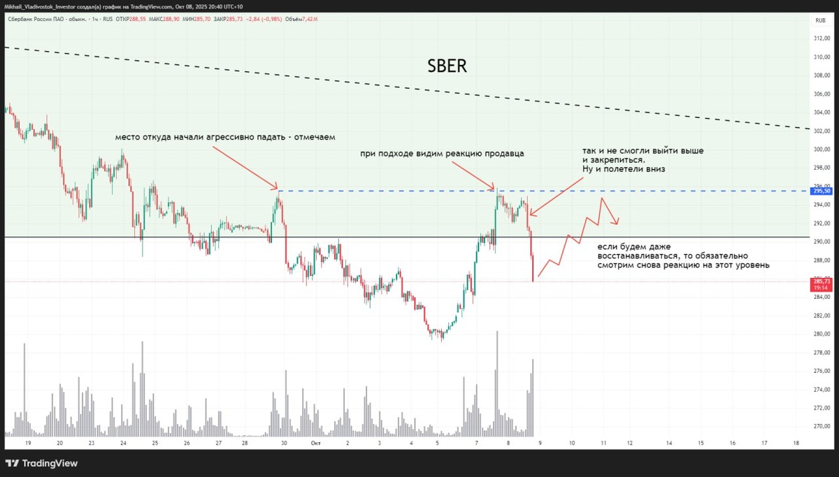 Обзор по Сбербанку $SBER и одновременно мини-обучалка Уровень, на который нужно всегда смотреть реакцию участников рынка ✍️ Кстати в видео обзоре мы с вами говорили про агрессивные продажи в левой части графика 😉 #sber #сбербанк #обзор #акции #сбер #обучалка