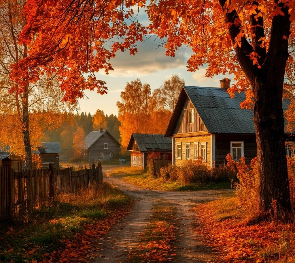 В деревенском доме особенно заметно, как осень вступает в свои права. Проснувшись ранним утром, сразу чувствуешь в воздухе её прохладное дыхание. За окном уже не летний зной, а мягкая, свежая прохлада, смешанная с ароматом опавшей листвы и влажной земли.