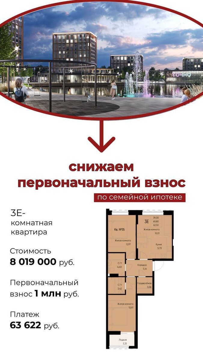 🔥 Суперпредложение для тех, кто мечтал о евро-трешке в Казани! Один из самых востребованных форматов — евро 3-комнатная квартира — сейчас доступен по уникальным условиям: 💰 Первый взнос всего 1 000 000 ₽! И это не шутка — таких лотов всего 4, и появляются они крайне редко. Отлично подойдёт под семейную или айти-ипотеку. Если давно хотели улучшить жильё — самое время действовать. Пишите в личные, расскажу все детали и помогу забронировать квартиру. 👉 Хотите узнать подробнее — напишите «+» в комментариях или пишите мне: @faizovalbert