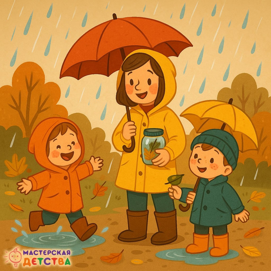 Казалось бы, дождь — повод остаться дома. Но на самом деле именно лёгкий осенний дождик может подарить детям самые яркие впечатления. Главное — немного подготовиться. 👣 Почему стоит выйти на прогулку: — После дождя воздух особенно чистый, а запахи становятся насыщеннее — дети учатся чувствовать природу — Капли на листьях, отражения в лужах, следы на мокрой земле — всё это настоящий урок наблюдательности — Такие прогулки закаляют организм и помогают укрепить иммунитет (если, конечно, не переохладиться) ☔️ Как подготовиться: — Наденьте непромокаемую обувь и плащи, а не просто куртки — детям понравится ощущение «настоящего приключения» — Возьмите зонт, но позвольте ребёнку поиграть с каплями — можно ловить их ладошкой, рассматривать через лупу — Возьмите с собой баночку для «дождевой коллекции» — пусть малыш соберёт мокрые листья, камушки, травинки ☔️ Во что поиграть: 1️⃣ «Следы в лужах» — кто оставит самый красивый отпечаток 2️⃣ «Музыка дождя» — послушайте звуки капель и придумайте и