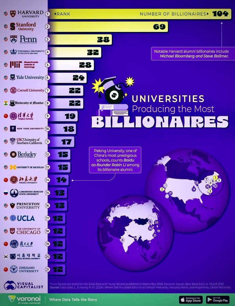 Топ университетов мира по выпускникам-миллиардеров 2025 года!