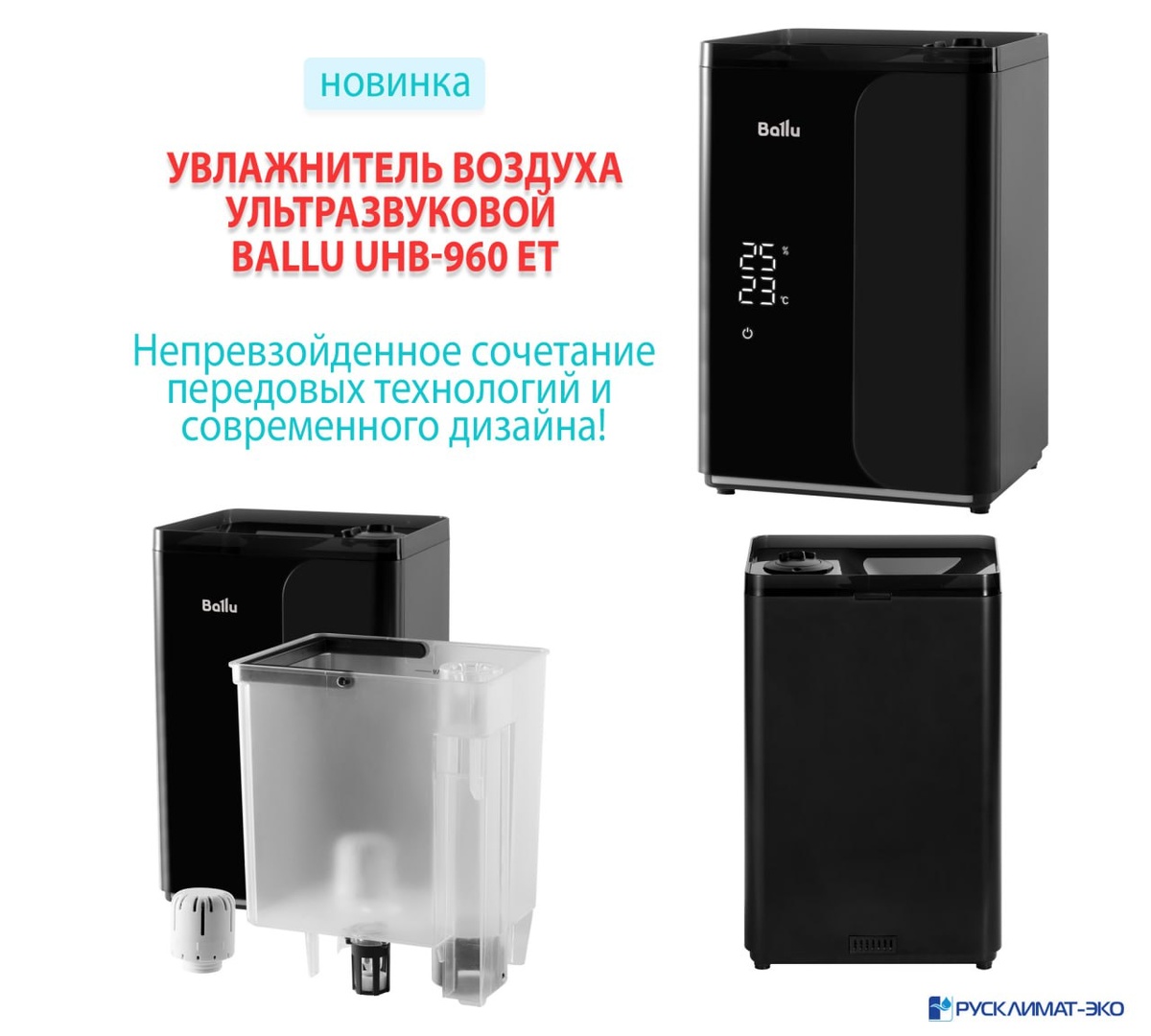 Увлажнитель воздуха ультразвуковой Ballu UHB-960 ET Непревзойденное сочетание передовых технологий и современного дизайна, гарантирующее атмосферу комфорта, свежести и уюта в вашем доме. Умные режимы упрощают настройку прибора и помогают поддерживать в доме максимально комфортный микроклимат в любое время суток. В увлажнителе предусмотрен режим «Теплый пар» для поддержания комфортной температуры воздуха и дополнительного обеззараживания выпускаемого пара. Прибор обладает высокой производительностью по увлажнению равной 350 мл/ч, что соответствует непрерывной работе и насыщению атмосферы влагой в течение 14 часов. В комплекте к увлажнителю идет специальный керамический фильтр-картридж, избавляющий воду от излишков солей и предотвращающий появление белого налета. К тому же для вашего удобства прибор оснащен решеткой для наполнения бака водой без снятия крышки, переносным баком с ручкой, приятной интерьерной подсветкой и выносным гигрометром со встроенным гигростатом для более точно