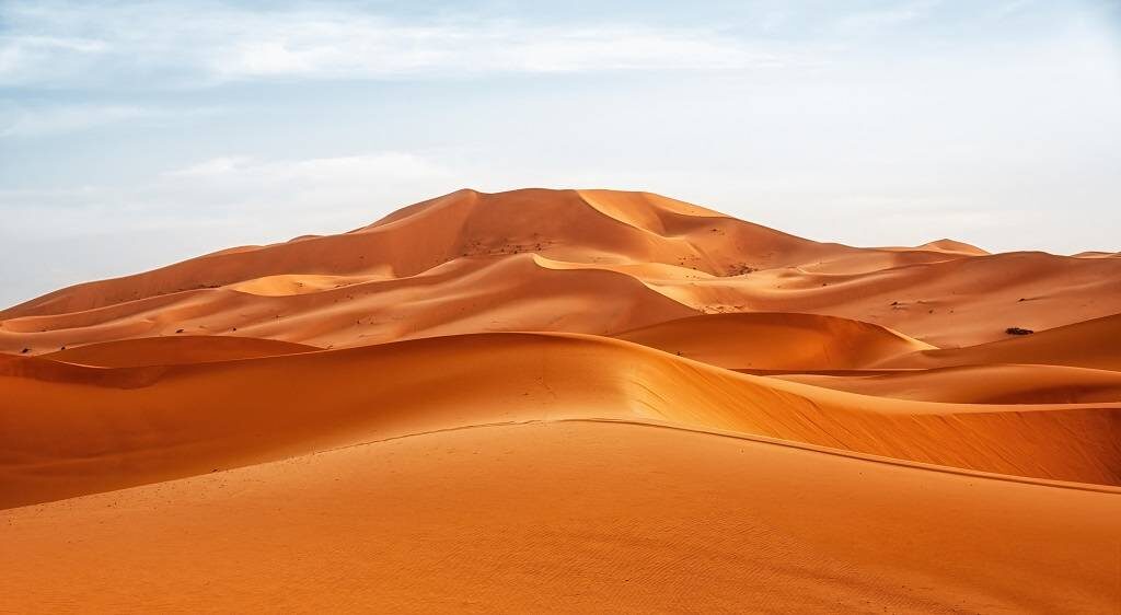 Сахара большей частью – это каменистая пустынная земля. Красивые барханы с мелким песком яркого цвета есть далеко не везде. Поэтому экскурсия в пустыню Марокко предлагает поездку именно в ту часть, где есть пески. На территории Марокко находятся две крупные дюны, которые называют здесь эрг (на арабском – песчаное море):