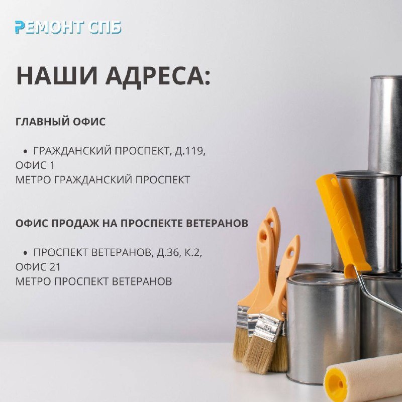 Друзья, в наших офисах вы можете получить подробную консультацию о наших услугах и подписать договор об оказании ремонтных работ. Наши адреса: Главный офис: Гражданский проспект, д.119, офис 1 🚇 Метро Гражданский проспект Офис продаж: Проспект Ветеранов, д.36, к.2, офис 21 🚇 Метро: Проспект Ветеранов Ждем вас! Мы всегда готовы помочь вам сделать ваш дом уютнее и красивее! 🏢✨ Смотреть портфолио: https://remont.spb.ru/projects
