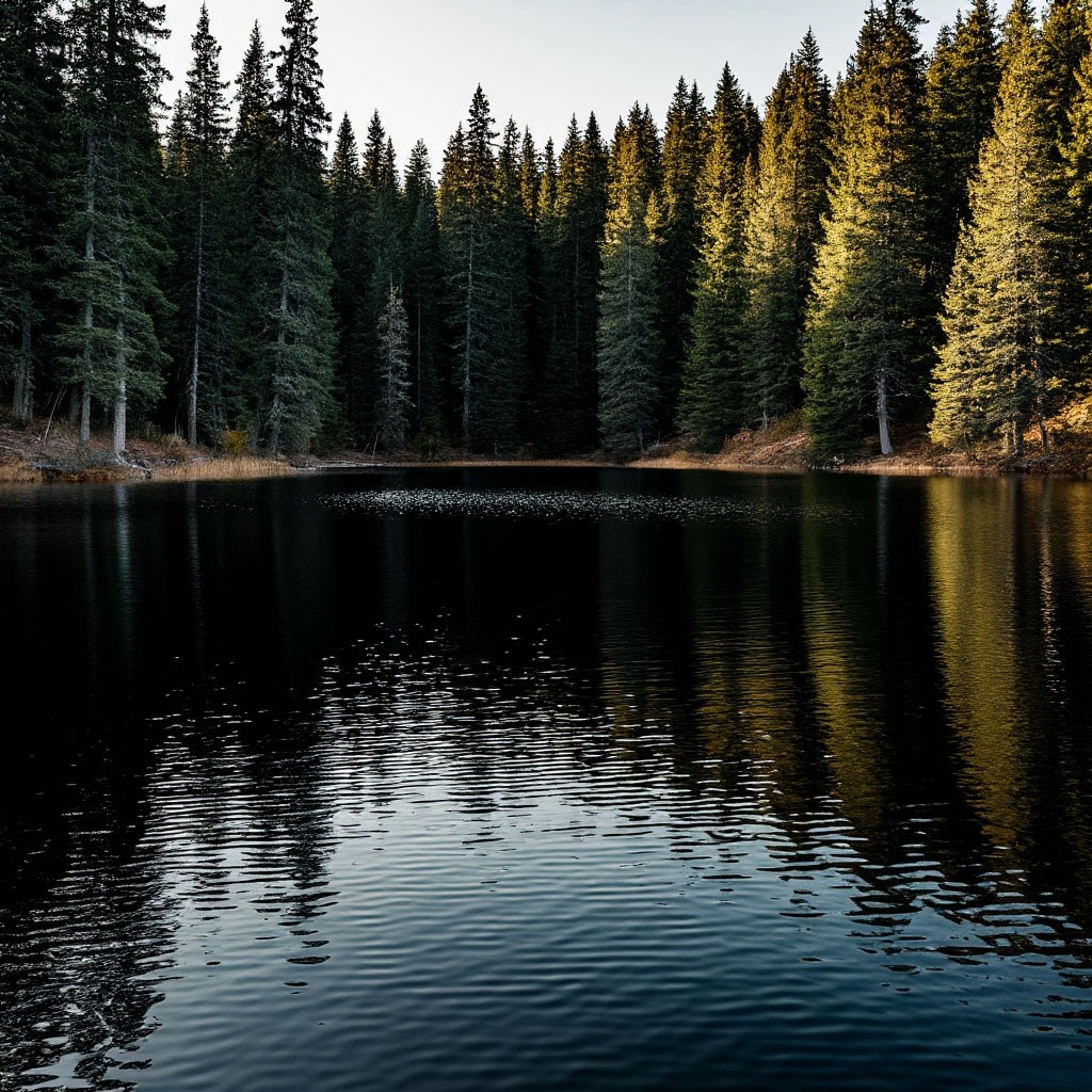 Вика вздрогнула от неожиданности, но продолжила свой путь. Берег озера весь зарос высокой травой, а водная гладь казалась абсолютно чёрной. На том берегу стоял густой лес, огромные сосны качались от ветра и скрипели. Девушка вдыхала чистейший воздух и наслаждалась видом, как вдруг она услышала, будто кто-то тихо её зовёт. Она обернулась по сторонам, но никого не увидела, лишь в воде что-то громко булькнуло. Вике стало не по себе, и она поспешила обратно.