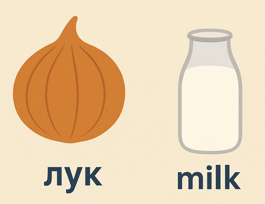На первый взгляд — ничего. Один лежит на кухне, второй стоит в холодильнике. А фонетика казалось бы совсем не при чем... Но если вы скажете эти слова вслух — лук и молоко — вы услышите интересное различие. Это всё про звук [л], произнесите еще раз и почувствуете, что он в этих словах произносится по разному. В английском языке тоже бывает разным: light L и dark L. И вот как «лук» неожиданно оказался ближе к слову milk, чем вы думали! Например, в словах "love" и "milk" он явно отличается, хотя это вроде бы один и тот же звук. В чём дело? Здесь вступает в игру понятие аллофона — это такие варианты произношения одного звука, которые не меняют смысла слова, но влияют на акцент и звучание. В английском языке звук [l] имеет два основных аллофона: "light L" и "dark L". Вот простое правило: Light L (мягкий)