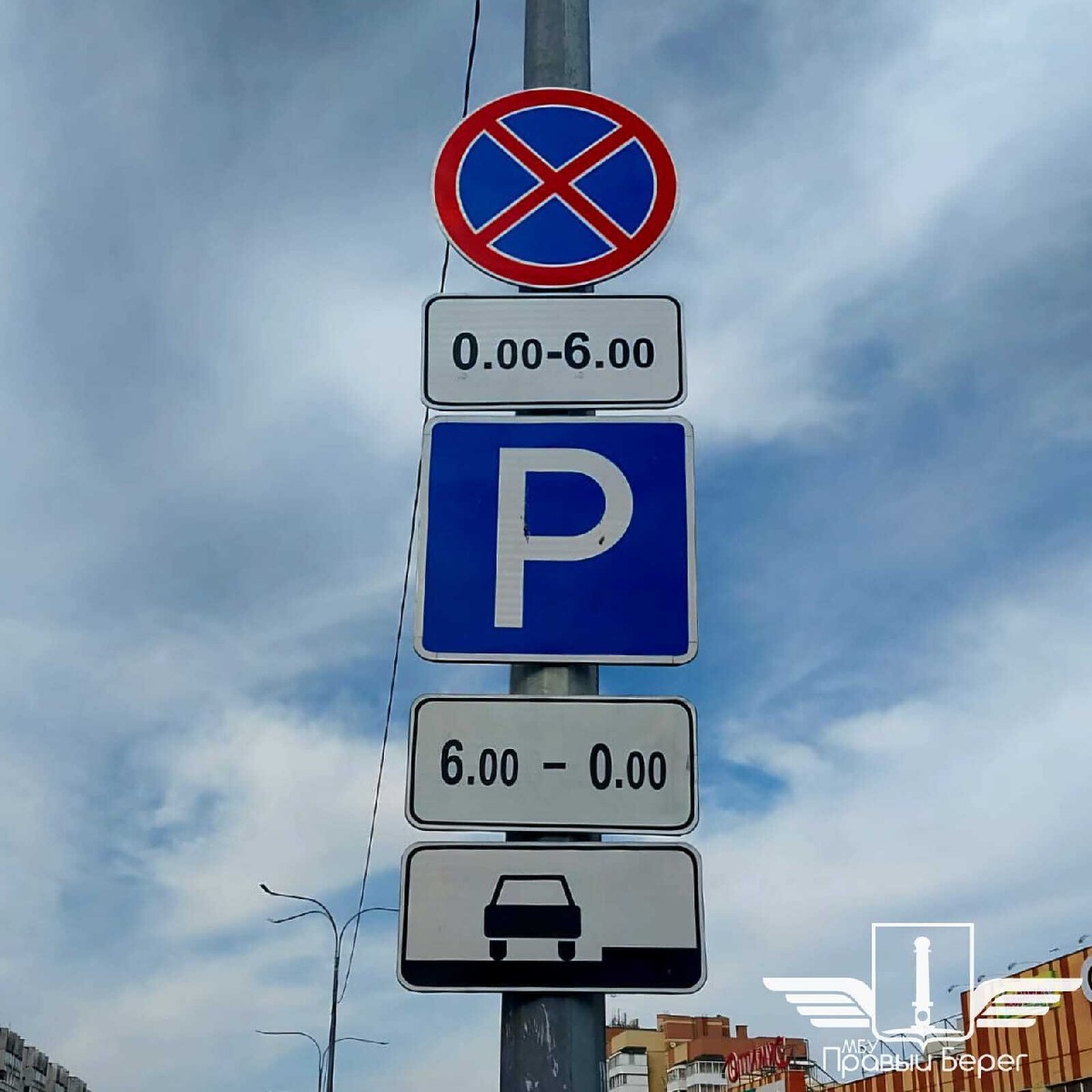 Сегодня установили знак, запрещающий ночную парковку транспортных средств по проспекту Ульяновскому, дом 16 (торговый центр "Оптимус") с