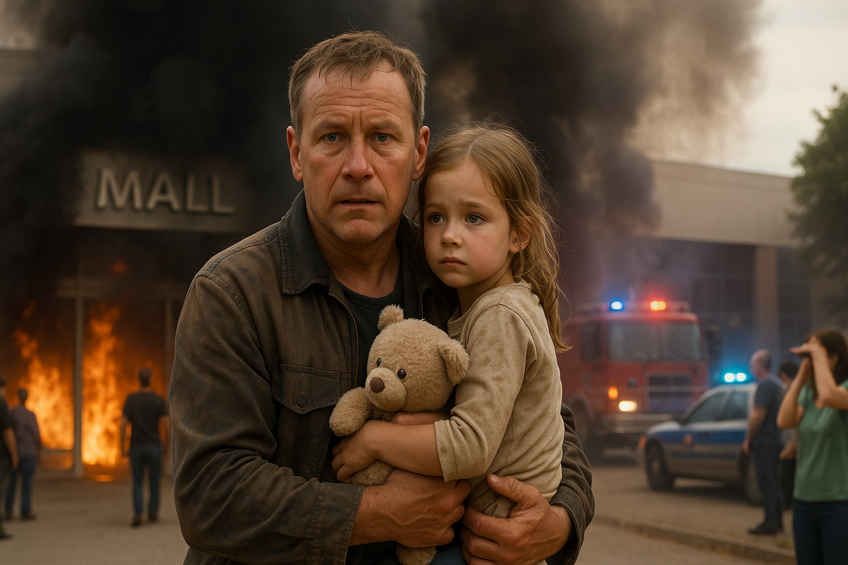 Поднял голову. Из второго этажа торгового центра валил чёрный дым. Люди выбегали наружу. Кто-то кричал. Включилась сигнализация — пронзительный вой.
