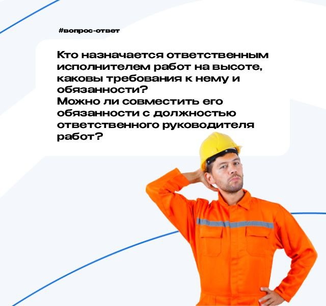 Кто назначается ответственным исполнителем работ на высоте, каковы требования к нему и его обязанности? Можно ли совместить его обязанности