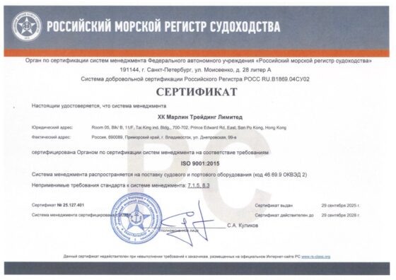 HK Marline Trading получила сертификат системы менеджмента качества РС