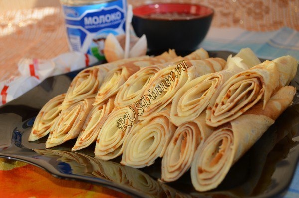 Тонкие блины Ингредиенты: Мука - 130 гр. Сахар - 75 гр. (3 ст. л.) Соль - 1 гр. (щепотка) Разрыхлитель теста - 1 гр. (щепотка) Ванилин - 1 гр. Молоко - 350 мл. Яйцо - 2 шт. (можно использовать 3 шт) Масло оливковое - 40 мл. (2 ст. л.) Источник: https://rusdinner.ru/page/tonkie-bliny