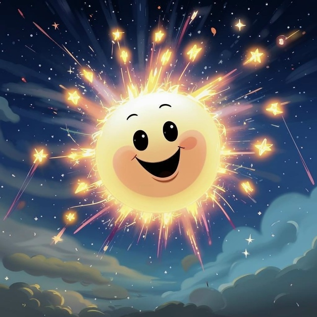 Лучик света мчался через просторы Вселенной. И вместе с ним во всех направлениях мчались миллионы рожденных одновременно с ним братьев. Их движение направляла общая цель: оповестить все живые существа во Вселенной о рождении новой звезды. Лучик спешил. Он верил в важность своей миссии. И вот он подлетел к первой планете. Она была похожа на большого ежа. Это была планета астрономов. Всяческие телескопы были установлены на поверхности этой планеты. Астрономы увидели свет новой звезды и от радости стали подкидывать вверх головные уборы, обниматься и выкрикивать лучику свои поздравления. Лучик обрадовался первой удаче и отправил им в подарок несколько искорок на память. Мимо множества планет пролетал он и везде оставлял свою весточку и дарил искорки света. На планете-океане его приветствовали дельфины. На лесной планете – благородные тигры. На планете гор – орлы. Подлетая к прекрасной голубой планете, лучик