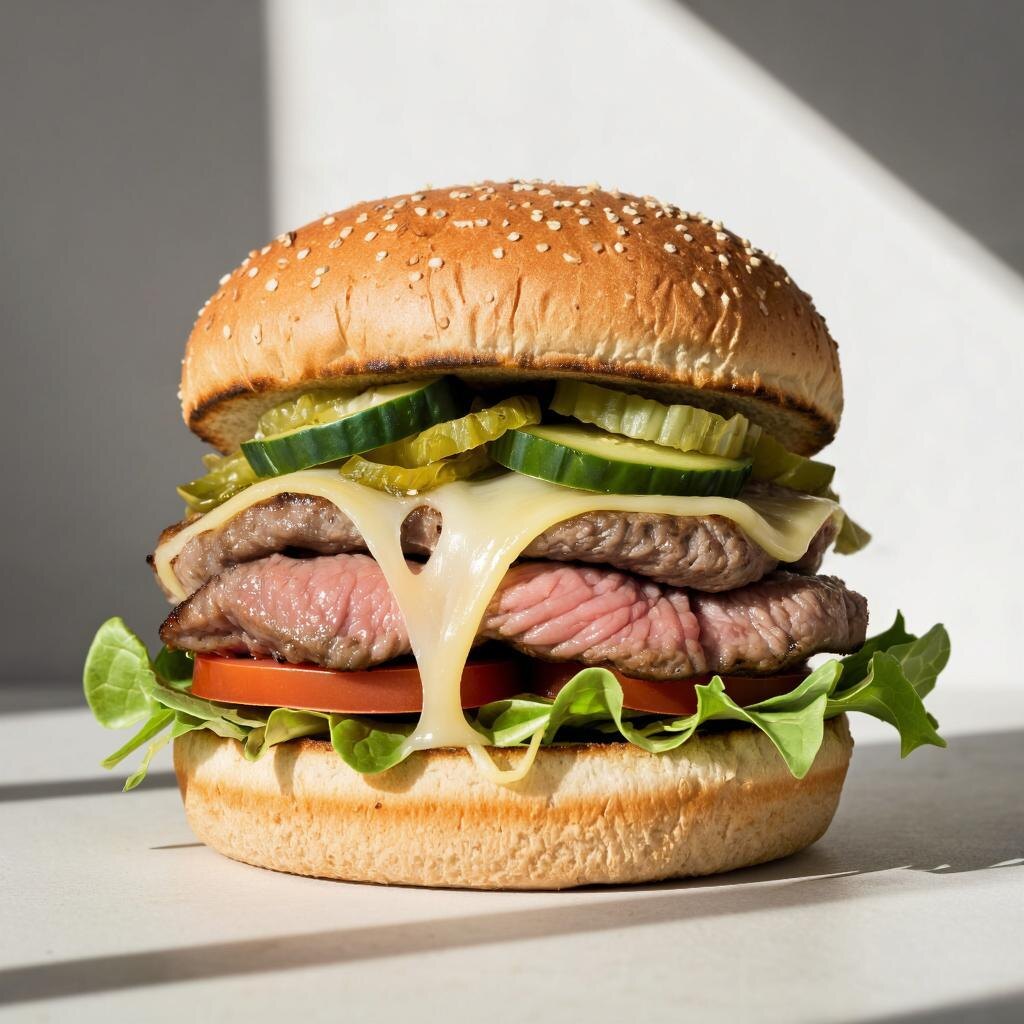 Гамбургер часто ассоциируется с фастфудом и нездоровым питанием, но при правильном подходе его можно сделать вкусным и полезным. Основной секрет — использовать натуральные и свежие ингредиенты, обойтись без излишнего жира и добавить больше овощей. Ниже представлен рецепт полезного гамбургера, который понравится и взрослым, и детям. Основные принципы полезного гамбургера: Используйте нежирное мясо, например, курицу, индейку или постную говядину.Обжаривайте котлету на гриле или запекайте, избегая жарки в большом количестве масла. Используйте цельнозерновую булочку вместо белой — она богаче клетчаткой.Добавляйте много свежих овощей: лист салата, помидоры, огурцы, лук. Замените майонез на йогурт или гуакамоле — это уменьшит калорийность и добавит полезных жиров. Рецепт полезного гамбургера: Ингредиенты: -Филе куриной грудки — 200 г -Булочка из цельнозерновой муки — 1 шт. -Листья салата — 2-3 шт. -Помидор — 1 средний -Огурец — 1 неболь