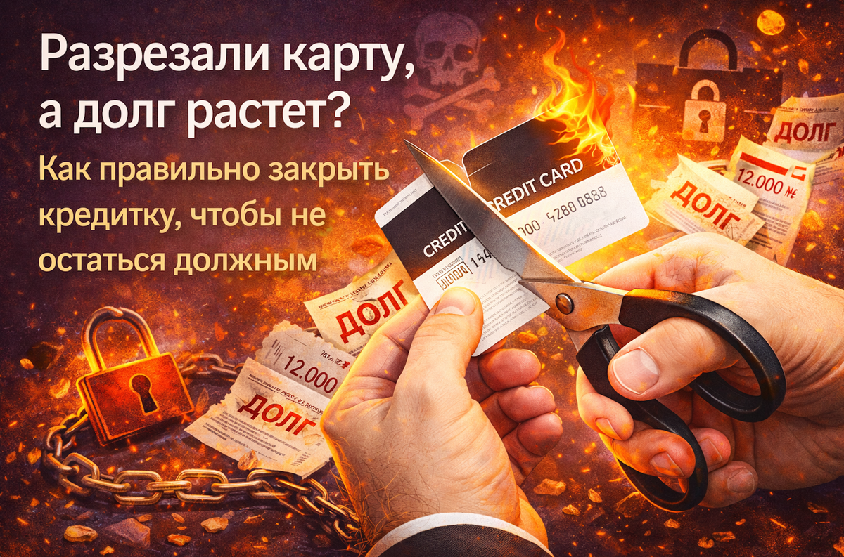 Приветствую вас, дорогие читатели! Вы уже подписались на канал? Ваша подписка - это сигнал, что мои заметки действительно помогают вам разбираться в сложных жизненных ситуациях, особенно когда речь заходит о долгах. История, которая повторяется тысячи раз: вы полностью погасили долг по кредитной карте, торжественно разрезали ее ножницами и забыли. А через полгода приходит смс о растущей задолженности. Знакомо? Правда в том, что физическое уничтожение карты ничего не отменяет. Карта это просто ключ от вашего кредитного счёта в банке. Разрезали ключ - но дверь в кредитный лимит осталась открытой. Разбираемся, как закрыть её навсегда, без сюрпризов в будущем. Результат: Испорченная кредитная история и неприятные звонки из банка по, как вам казалось, несуществующему долгу. Перед закрытием обязательно отмените все платные услуги: Почему это важно: Процедура закрытия счёта может длиться до 45 дней. Всё это время списания за услуги будут продолжаться, создавая новый долг. Не доверяйте цифре в