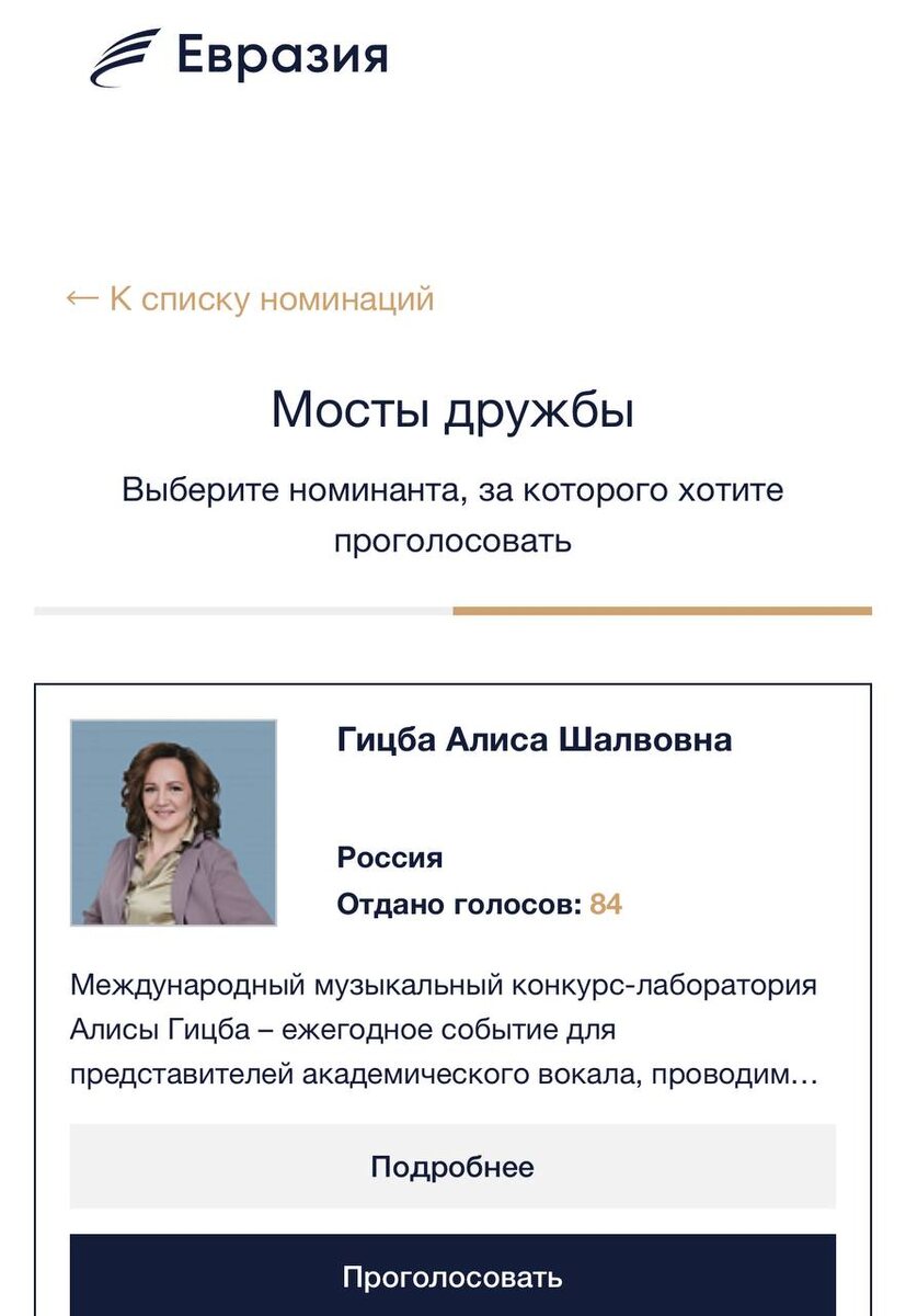 Друзья, проголосуйте, пожалуйста, за наш проект в голосовании Премии Евразии в номинации «Мосты дружбы»: https://vote.premiyaevrazia.com/nomination/17 и поделитесь ссылкой🎼 🎼 Наш девиз: музыка без границ и расстояний! #конкурслабораториягицба #КонкурсЛабораторияАлисыГицба #АлисаГицба #Россия #Абхазия #ПФКИ
