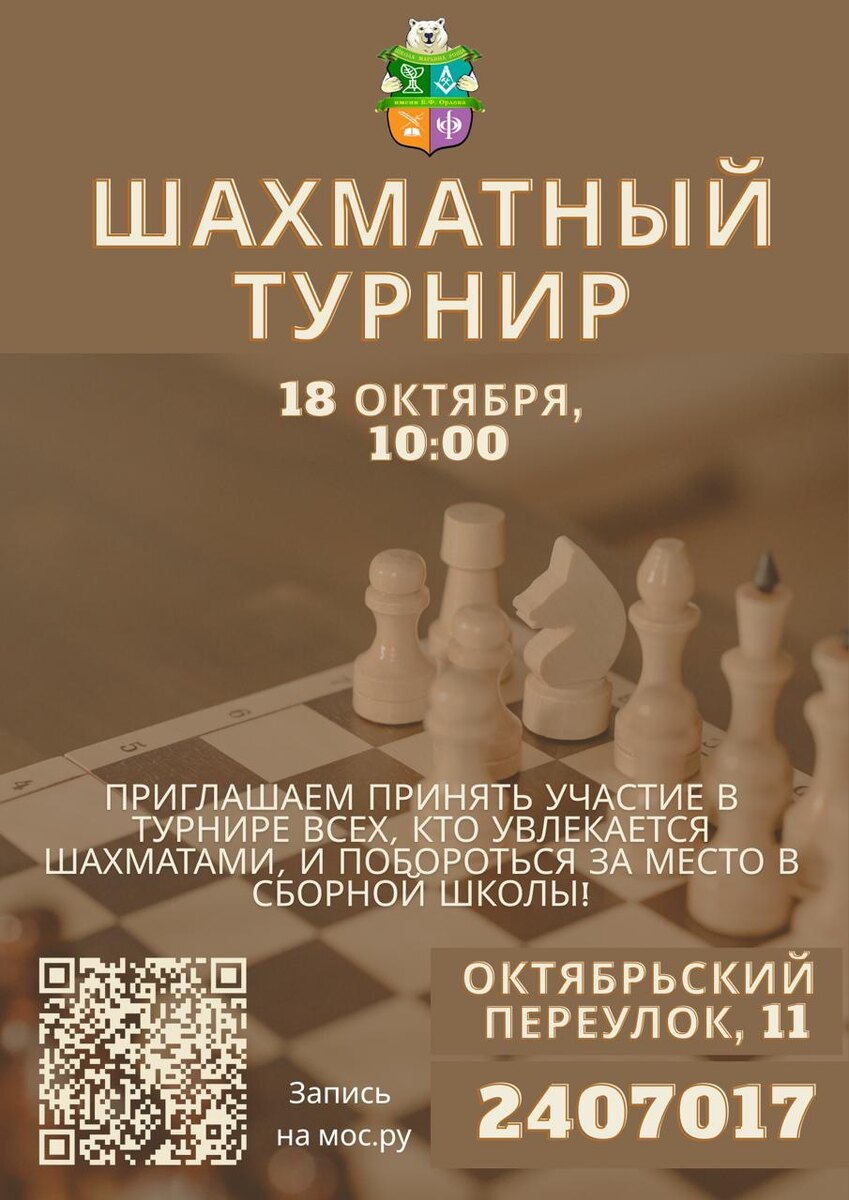 ♟ Шахматный турнир для сборной школы! Приглашаем принять участие в турнире всех, кто увлекается шахматами, и побороться за место в сборной школы! Шахматы — это не просто игра, а мощный тренажёр для ума! Они развивают мышление, память, концентрацию внимания и умение быстро принимать решения. 📆 18 октября/ суббота ⏰ 10:00 📍 Октябрьский Переулок, 11 Приходи и докажи, что в команде достоин быть именно ты! #ДОНМ #ШколыКолледжиМосквы #шахматныйтурнир #доптоп