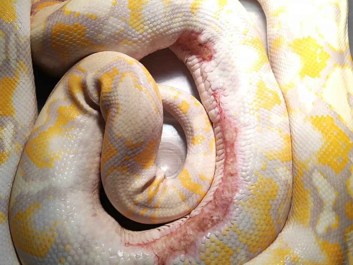 Их причиной стал термоковрик в вольере. Чтобы согреть рептилию, на дно аквариума подкладывали специальный коврик. Из-за неисправности он почти сжег питона.