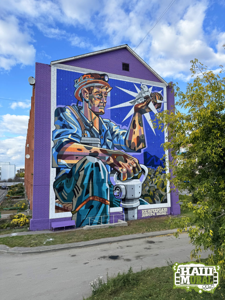 Шахтер-золотодобытчик в авторском стиле известного художника Сергея Имана красуется на фасаде многоквартирного дома по адресу г.Пласт ул. Октябрьская, 40 Мурал называется «Свет, добытый из темноты». Профессия шахтёра по сей день считается одной из самых сложных и важных. В Пласте это знают не понаслышке. Это дело для людей сильных как телом, так и духом. Рабочим приходится спускаться на большую глубину, трудиться в условиях, сопряженных с риском. Тем не менее до сих пор находятся отважные люди, которые неустанно трудятся ради добычи полезных ископаемых. «На моей работе изображен шахтер. Ракурс подобран так, что мы смотрим на героя картины снизу вверх, тем самым, подчеркивая значимость и монументальность представителя сложной и важной профессии. Руки шахтера изображены крупными и выразительными, что говорит о том, что это работа для самых сильных людей. Шахтер изображен сидящим на ящике, после тяжелой рабочей смены. На фоне видны горы добытого золота. Смена закончилась поздно, уже смерк