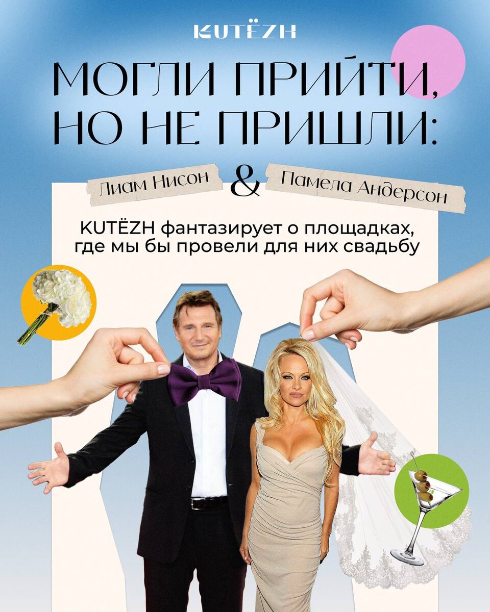 Свадьба Селены Гомес и Бенни Бланко — это, конечно, вау-событие, которого все долго ждали, но наша любимая пара — Лиам Нисон и Памела Андерсон! Наша команда пофантазировала о локациях, где бы мы провели свадьбу для этой звёздной пары 💫 #kutezh_inspiration