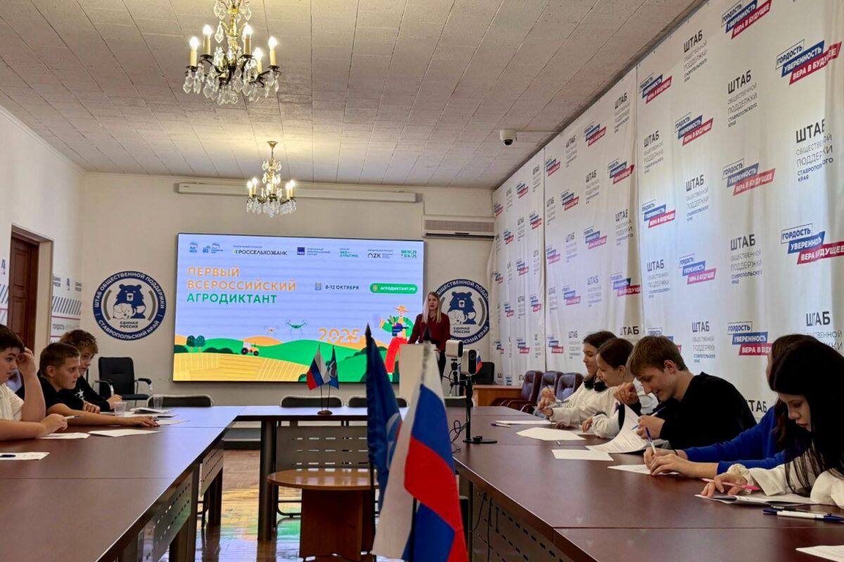 Ставрополье присоединилось к Первому Всероссийскому Агродиктанту Для проведения тестирования в крае организовано порядка 300 площадок. Центральной площадкой проведения стал Штаб общественной поддержки Ставропольского края. Сегодня на вопросы там ответили активисты Движения Первых. Как и было заявлено, на прохождение Агродиктанта отводится 45 минут, в течение которых нужно ответить на 30 вопросов, охватывающих ключевые направления АПК: растениеводство и животноводство, техника и рыбное хозяйство, переработка, экспорт, агротуризм, вопросы обеспечения продовольственной безопасности России, история отрасли, профессии АПК и другие. Вопросы адаптированы под разные возрастные и профессиональные группы. Агродиктант будет проходить до 12 октября включительно, как в онлайн, так и офлайн форматах. Для прохождения тестирования необходимо зарегистрироваться на сайте проекта.