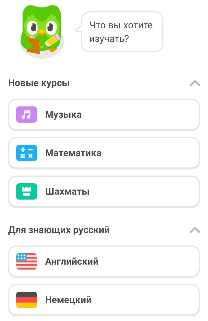 🎵🦉🎵 А вы знали, что приложение Duolingo, это давно не только курсы по изучению самых разных языков, но так же курсы по математике, музыке и даже шахматам? Если не знали, давайте быстро глянем, что там внутри этих неязыковых курсов. 🧐 Курс по шахматам на Duolingo вышел в бета-версии ещё в апреле 2025-го, а в сентябре на Duocon 2025 анонсировали полное расширение. Теперь можно не только задачки решать, но и играть в режиме реального времени с настоящими людьми. Курс рассчитан на новичков (до уровня ~1500 Elo), начинается с азов — как ходят фигуры, захваты и прочее. Большая часть заданий — короткие задачки на тактику, остальное — мини-матчи (быстрые схватки) и полные партии по 20 минут. Всё геймифицировано: стрики, звёздочки, сундуки с алмазами. И всё это абсолютно бесплатно! Ведёт уроки Оскар — лысый дядька с усами и париком (который слетает, когда его королеву забираешь 😄). Он комментирует ходы, кидает саркастичные цитаты, адаптируется к уровню ученика. С новичками он очень нежен,