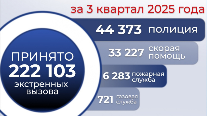 Операторы единого номера "112" за третий квартал 2025 года - июль, август, сентябрь, приняли 222 103 вызова от жителей и гостей Ленобласти. Такой статистикой поделились в пресс-службе системы 8 октября. В день операторы обрабатывали свыше 3,5 тысячи обращений. Большинство звонков требовали незамедлительного реагирования экстренных служб. Так, 6283 заявки направлялись в пожарно-спасательную службу, 44 373 - в полицию, 33 227 обращений требовали помощи скорой, и 721 звонок перенаправляли в службу газа. Чаще всего жители региона пользуются стационарным телефоном для звонков в 112 - 6512 бессимочных обращений. Операторы также получили 1953 смс. Кроме того, специалисты по дополнительным номерам принимали заявки от граждан, желающих поступить на военную службу по контракту - всего 1516 вызовов.