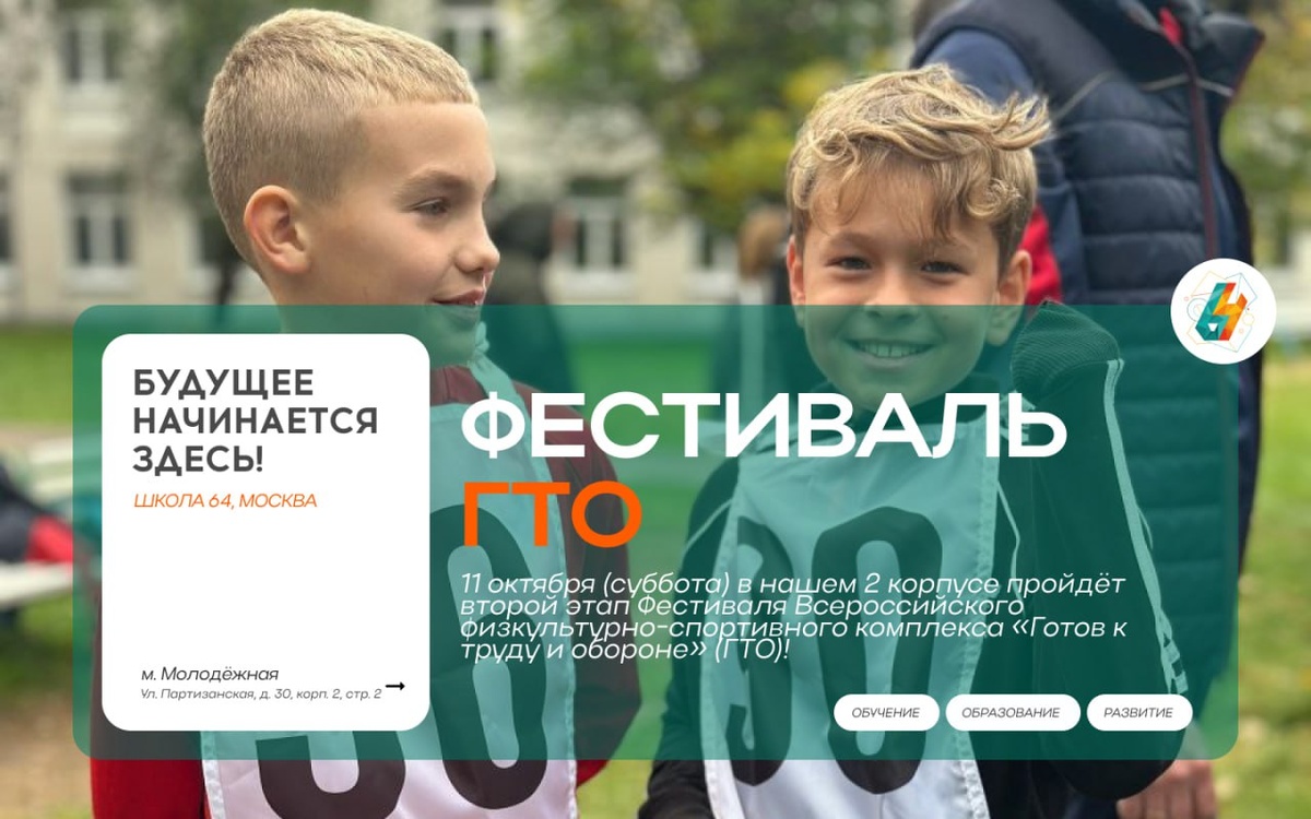 11 октября (суббота) в нашем 2 корпусе пройдёт второй этап Фестиваля Всероссийского физкультурно-спортивного комплекса «Готов к труду и обороне» (ГТО)!