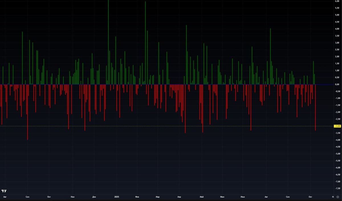 Индекс Мосбиржи снижается в моменте на 3.3%.