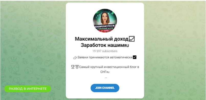 Интернет-аферисты отлично знают потребности пользователей и обещают их быстрое удовлетворение. Обычно вся схема скама строится по принципу выплаты огромных дивидендов, для получения которых потребуются скромные инвестиции. В качестве типичного примера того, как мошенники используют стремление к наживе и низкую финансовую грамотность подписчиков можно рассмотреть Телеграмм-канал 📈Стратегия заработка | Максимальная прибыль🇷🇺. РАБОЧИЙ МЕТОД ЗАРАБОТКА Администратор представляется именем Наталья. Себя она называет успешным коммерсантом, которая заработала целое состояние на финансовых сделках. Среди применяемых методов у нее доминирует спекуляция криптой, и здесь она получает миллионный доход. На текущем этапе ее бизнес требует расширения, для которого необходима команда трейдеров. Для развития объемов сделок она набирает с помощью мессенджера Телеграмм торговые группы. РАБОЧИЙ МЕТОД ЗАРАБОТКА Последовательность организации сотрудничества очень простая и состоит из следующих шагов: Адм