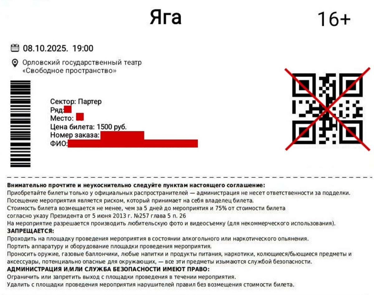 "Наши постоянные зрители знают, что электронный подлинник выглядит совсем иначе. В фейковых билетах указаны вымышленные персональные данные, а реальные места принадлежат другим людям. По поддельному билету невозможно попасть на спектакль, потому что наши сотрудники на входе считывают QR-код", - предупредили потенциальных жертв обмана в "Свободном пространстве".