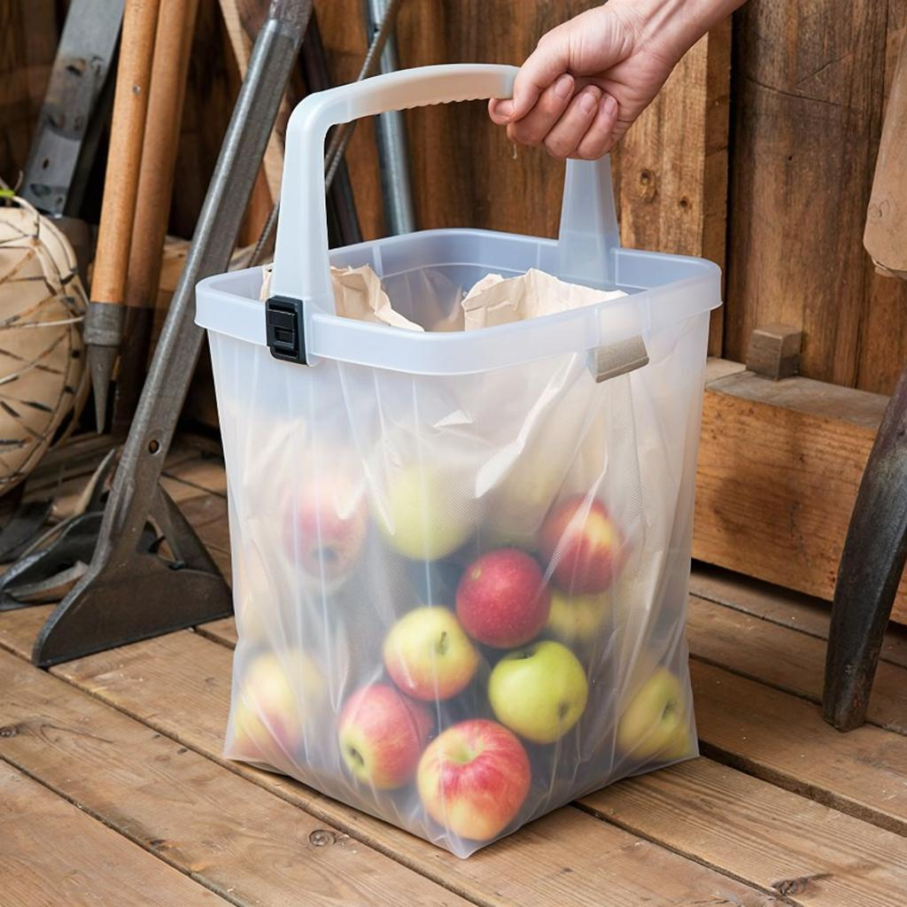 Рассмотрим основные сценарии применения этого устройства. Начнем с самого приятного – сбора урожая. Представьте, что вы снимаете яблоки с дерева или обрываете огурцы с грядки. С обычным мешком вам пришлось бы либо держать его в одной руке, что неудобно и мешает работе двумя руками, либо постоянно наклоняться к лежащему на земле пакету. Держатель решает эту проблему. Мешок зафиксирован на удобной высоте, часто чуть выше уровня колен. Вы двумя руками срываете плоды и бросаете их в стабильную цель. Скорость сбора увеличивается в разы, а спина и колени не устают от постоянных наклонов. Это особенно важно для людей старшего возраста или тех, у кого есть проблемы с опорно-двигательным аппаратом. Сбор картофеля, моркови, лука превращается из изматывающей процедуры в достаточно комфортное занятие.