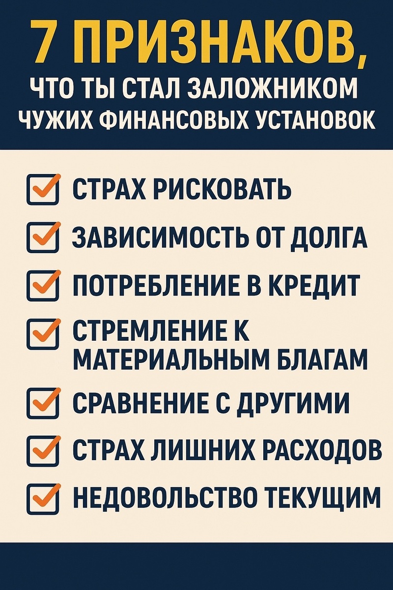 Финансовые установки — это внутренние убеждения, которые определяют, как мы относимся к деньгам. И если они не осознаны, мы рискуем прожить жизнь не по своему сценарию, а по чужому. Ниже ты найдёшь 7 признаков того, что уже оказался под влиянием чужих установок — и не осознаёшь, как они управляют твоими финансовыми решениями.