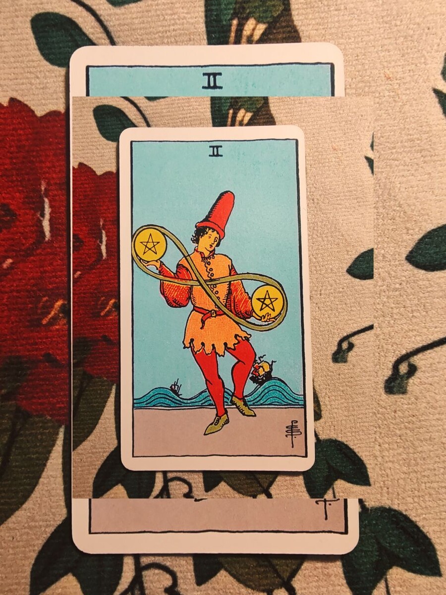 Как лучше всего использовать эту энергию сегодня: · Расставьте приоритеты на ходу. Поймите, какими "двумя мячиками" (главными задачами) вы жонглируете сегодня. Остальное либо делегируйте, либо отложите. · Используйте технику "Помодоро" или другие методы тайм-менеджмента. Короткие периоды концентрации сменяющиеся перерывами — идеальны для этой энергии. · Будьте как вода. Если возникло препятствие, не ломитесь через него, а обойдите, найдите обходной путь. Гибкость — ваша суперсила сегодня. · Контролируйте финансы. Как земная карта, Двойка Пентаклей может указывать на необходимость балансировать между доходами и расходами, принимать небольшие финансовые решения. · Не бойтесь просить о помощи. Если "мячики" начинают падать, не стесняйтесь обратиться за поддержкой, чтобы восстановить равновесие. Возможные ловушки (на что обратить внимание): · Растерянность и суета. Можно так активно метаться между задачами, что в итоге не сделать ничего существенного. · Стресс от многозадачности. Если