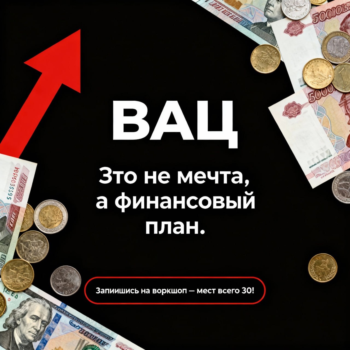 БАЦ — и ты в деньгах. Но БАЦ — это не случайность. 🎯 Это не просто мечта «хочу много зарабатывать». Это — конкретный финансовый план, который бьет точно в цель. Например: 💰 Твой БАЦ = выйти на доход 1 млн/мес к 2026. 💰 Твой БАЦ = запустить продукт с оборотом 10 млн/год. Если эти цифры отзываются в тебе не просто мечтой, а внутренним «да, это моё» — ты готов к разговору. Бесплатный воркшоп «Как превратить БАЦ в деньги» 🗓 16 октября, 19:00 МСК На нем мы без воды разберем: ▫️ Как из абстрактной цели сделать финансовый план-конструктор. ▫️ Какие 3 компонента превращают идею в денежный поток. ▫️ Почему твой БАЦ до сих пор не реализован и что делать прямо сейчас. Мест всего 30. Такой формат выбран специально для точечной работы и ответов на ключевые вопросы. Хватит метаться между «хочу» и «как». Жми на ссылку → Забронируй место в календаре ↓ 👉 https://vshsnv.ru/clubactivlive/mask_reg Попадешь в список — получишь напоминание перед стартом. #БАЦ #ФинансовыйПрорыв #БизнесВоркшоп #