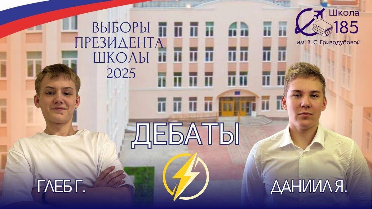 Уже завтра, 16 октября 2025 года, в 10:15 в актовом зале состоятся дебаты между кандидатами на пост президента нашей школы — Глебом Г. и Даниилом Я.