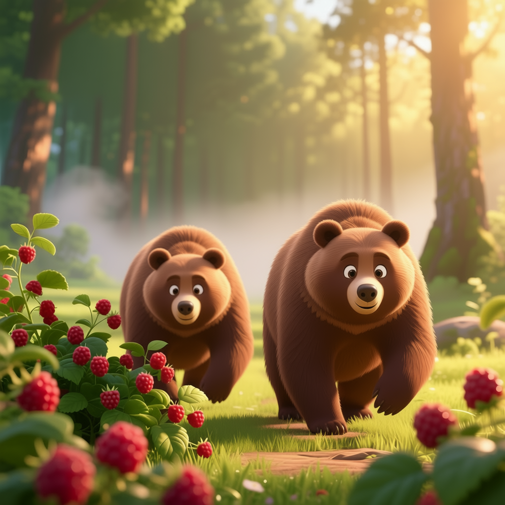 - Мама, я устала. Мы все идем и идем, а еды все нет и нет. Только одна малина вокруг. - Ничего, потерпи немного. Малина — это тоже еда. Она очень полезная. Но я чувствую запах рыбы. Нам осталось немного пройти. Пахнет уже очень сильно. - Я ничего не чувствую. Мне никакой рыбой не пахнет. - Ты просто отвлекаешься и не принюхиваешься. Вот остановись и поверни свой нос к ветру. И теперь нюхай. - Ой, правда рыбой пахнет. Пошли быстрее. Я люблю рыбу. - У нас, у медведей, нюх лучше, чем у собак. Мы можем улавливать запах пищи за много километров. Вот вырастишь и тоже научишься. Ты уже многому научилась. Умеешь на задних лапах ходить, умеешь быстро на дерево залазить. - Да, я уже большая. - А когда ты родилась, была такая маленькая и смешная. Ты весила меньше килограмма. - А что такое килограмм? - Килограмм — это как одна небольшая рыба или как пять, или шесть кедровых шишек. - Так мало? - Да, но теперь ты выросла, потому что кушаешь хорошо. Сейчас лето, и нам нужно много и хорошо кушать, что