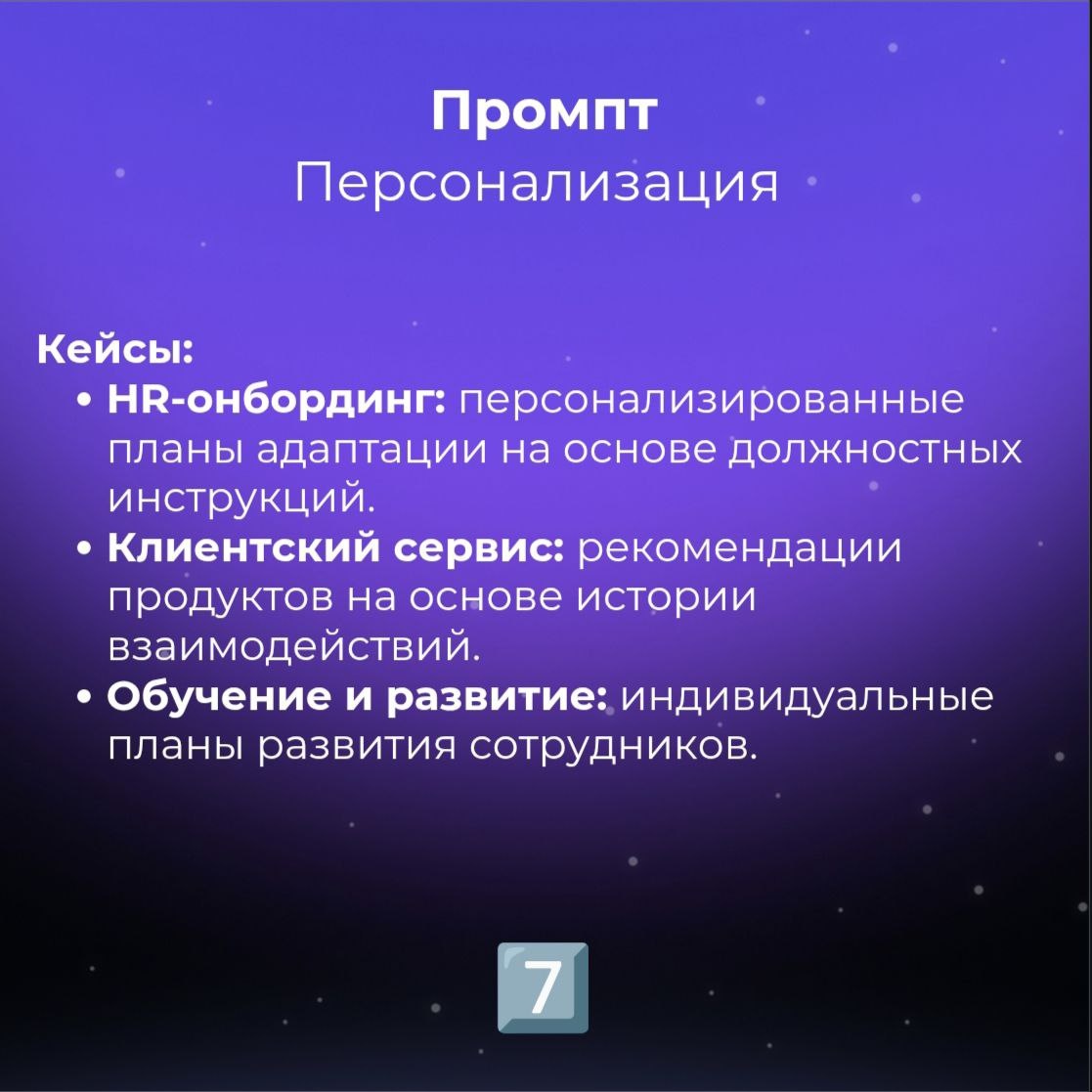 π±ΠΠ½ΡΡΡΡΠΌΠ΅Π½ΡΠ°ΡΠΈΠΉ ΡΠΎΠ²ΡΠ΅ΠΌΠ΅Π½Π½ΠΎΠ³ΠΎ Π±ΠΈΠ·Π½Π΅ΡΠ°: ΡΡΠ΅ΡΡΡ ΡΠ°ΡΡΡ ΠΏΠΎΠ΄Π±ΠΎΡΠΊΠΈ RAG-ΠΏΡΠΎΠΌΠΏΡΠΎΠ² Π΄Π»Ρ ΡΠ°Π±ΠΎΡΡ Ρ Π΄ΠΎΠΊΡΠΌΠ΅Π½ΡΠ°ΠΌΠΈβοΈ 7οΈβ£ΠΠ΅ΡΡΠΎΠ½Π°Π»ΠΈΠ·Π°ΡΠΈΡ ΠΠ° ΠΎΡΠ½ΠΎΠ²Π΅ Π΄Π°Π½Π½ΡΡ