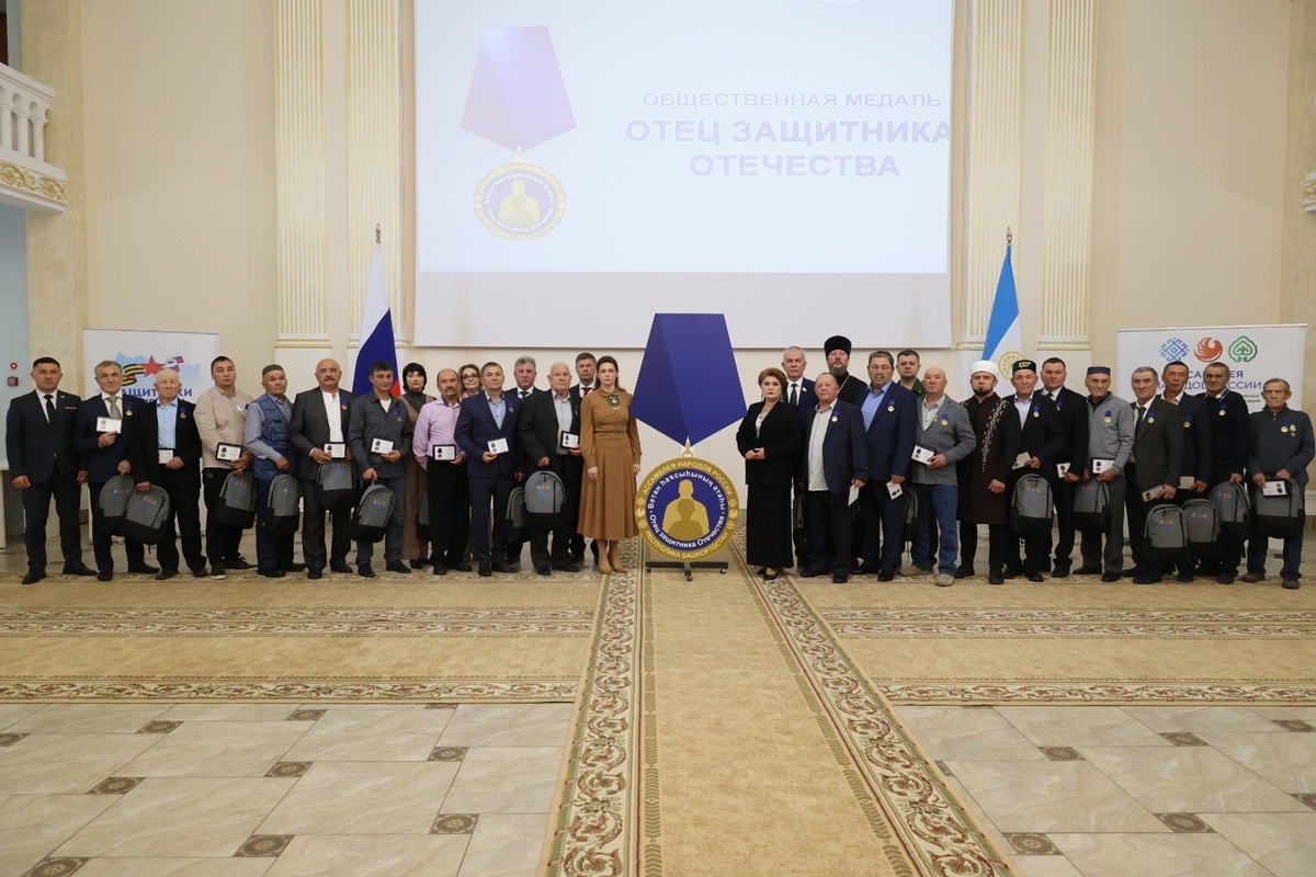 В Уфе накануне Дня отца состоялась церемония награждения общественными медалями «Отец защитника Отечества». Награды вручили 19 отцам участников СВО. Впервые награда была вручена в прошлом году. Первые медали в столице Башкирии вручила статс-секретарь — заместитель министра обороны РФ, председатель госфонда «Защитники Отечества» Анна Цивилёва. Автор проекта «Отец защитника Отечества», руководитель филиала госфонда «Защитники Отечества» по РБ Гульнур Кульсарина подчеркнула, что отцы не только воспитали настоящих героев страны, но и ведут активную общественную жизнь, а также помогают фронту. «Сегодня мы чествуем отцов, которые воспитали настоящих мужчин, готовых защищать свою страну. Отцов, которые вложили в своих сыновей всё самое лучшее: мужество, ответственность, любовь к Родине. Каждый, кто сегодня получает эту медаль, — это пример стойкости и преданности. Вы — те, кто в трудные минуты поддерживает своих сыновей, кто молится за их возвращение, кто с нетерпением ждет их дома. Ваша забо