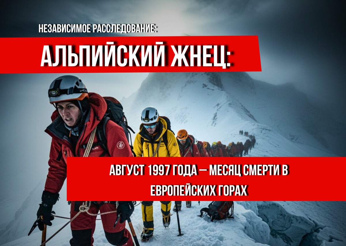 Когда популярные маршруты становятся смертельной ловушкой Французские, Швейцарские, Итальянские Альпы. Август 1997 года. Летний сезон традиционно привлекает в Альпы сотни тысяч любителей гор – от простых треккеров до опытных альпинистов. Величественные вершины, казалось бы, хорошо оборудованные маршруты и развитая инфраструктура создают иллюзию безопасности. Но август 1997 года навсегда вошел в историю как один из самых черных месяцев для европейского альпинизма, превратив эти живописные горы в арену масштабной и необъяснимой серии трагедий, унесших десятки жизней. Необъяснимая волна смертей: Что произошло? В течение всего августа 1997 года Альпы были охвачены серией инцидентов, которые шокировали как обывателей, так и профессионалов. Смерти происходили практически ежедневно, порой унося жизни целых групп. • Масштаб: Точное число погибших варьируется в разных отчётах, но эксперты сходятся на цифре более 40-50 человек за один месяц, что для обустроенных Альп является беспрецедентным.