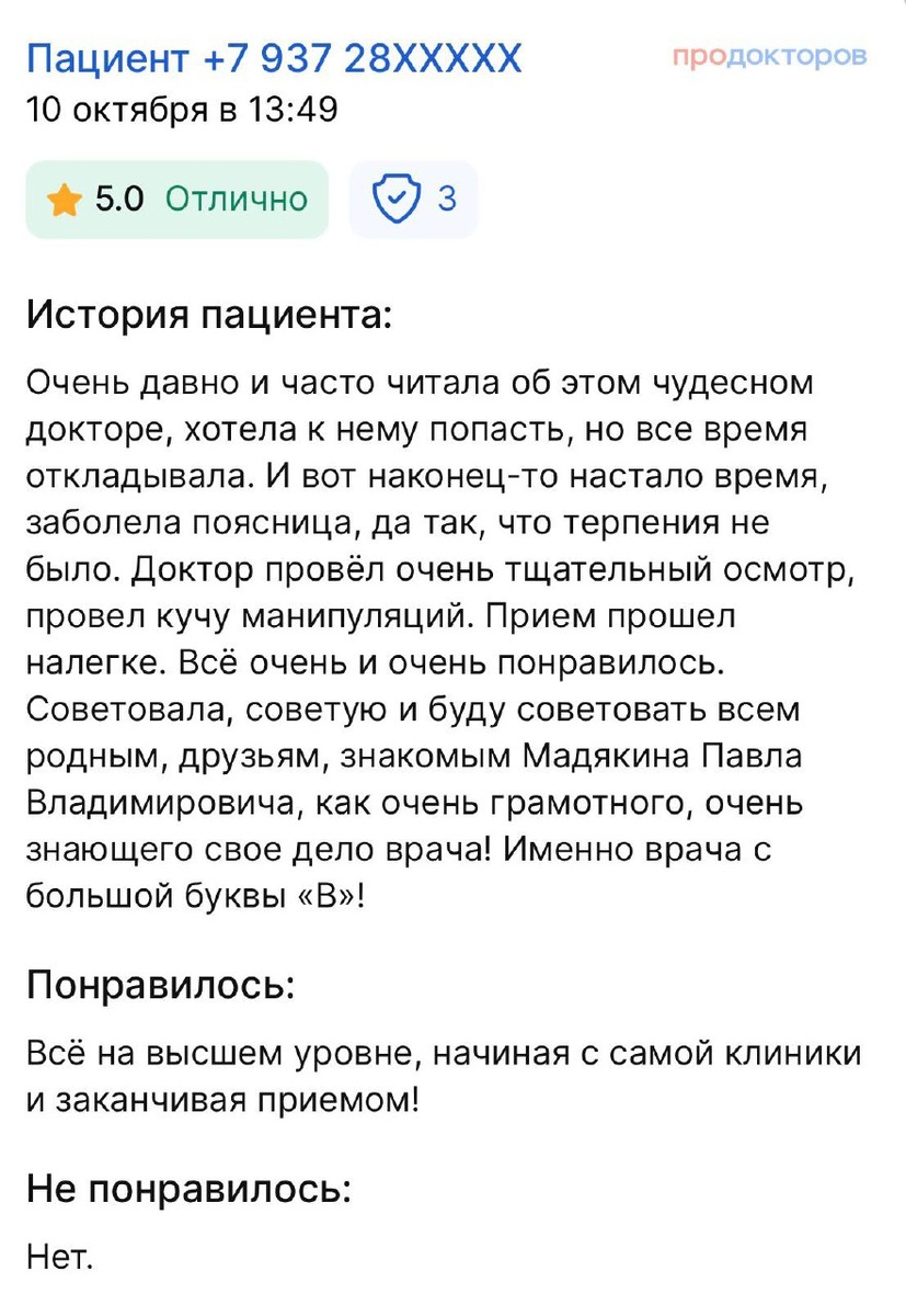 Благодарю пациентов, которые делятся своими историями и отзывами