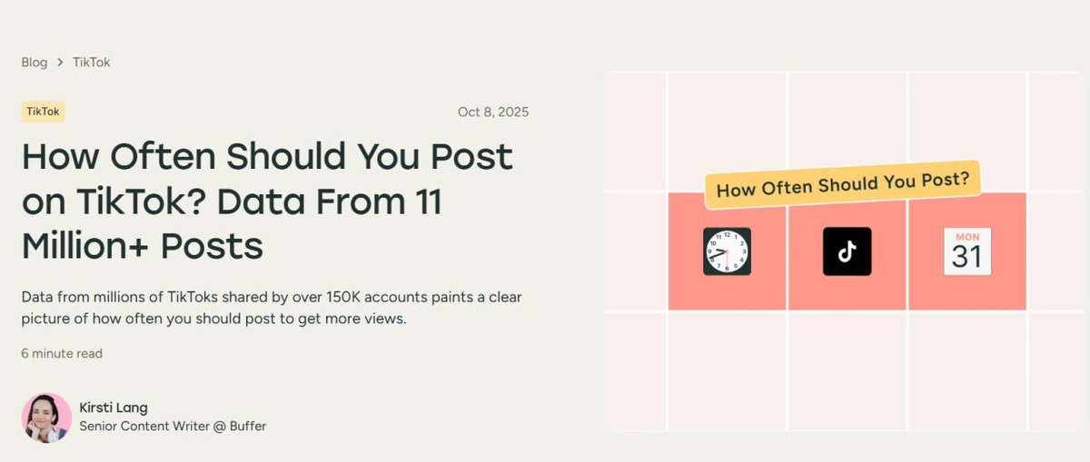 Все мы слышали советы «пости по 3 раза в день», чтобы вырасти в TikTok. Но так ли это на самом деле? Команда Buffer задалась этим вопросом и провела грандиозное исследование, проанализировав 11,4 миллиона TikTok-постов со 150 000 аккаунтов! И результаты оказались куда более тонкими, чем «экспертные» рекомендации. Самое важное, что показало исследование. 1. «Пости чаще – получай больше просмотров» — это правда, но с НЮАНСАМИ! Анализ чётко показал, что чем чаще вы постите, тем больше просмотров в среднем получает каждый ваш пост. Самый БОЛЬШОЙ «прыжок» в эффективности (то есть максимум отдачи на вложенные усилия) происходит при переходе от 1 поста в неделю к 2-5 постам в неделю. Если вы сейчас постите раз в неделю, то увеличив частоту до 2-5 раз, вы получите максимальный рост просмотров при минимальном увеличении трудозатрат. Однако медианные просмотры не растут прямо пропорционально числу постов — большинство видео будут давать «средний» результат, а лишь небольшая доля может «взорв